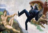 "Pose Ton CRS" (English: "Put Your CRS") is a photoshop meme based on an exploitable photograph of a French riot police officer kicking a female bystander during a demonstration against the French government's labor code reform in April 2016. After the video footage of the incident surfaced on Twitter, the image of the police officer quickly became a subject of photoshopped parodies in the French social media, in a similar vein to the Casually Pepper Spray Everything Cop that rose to online notoriety during the Occupy protests at Univeristy of California's Davis campus in November 2011.