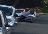 That same day, Twitter user @PhillyCustoms[5] posted a tweet juxtaposing a screen capture of Budden running juxtaposed next to a screen capture of the T-1000 android assassin from the 1990 science fiction film Terminator 2: Judgement Day (shown below, left). Within 24 hours, the tweet gained over 1,600 retweets and 1,000 likes. Meanwhile, Twitter user @the_blueprint posted a screencapture of Budden staring into a car window with a caption referencing Budden's 2003 hip hop song "Pump It Up" (shown below, right).