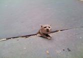 "I was walking along and texting. Not really paying that much attention. Then something caught my eye. I thought I was about to step in dog shit, but quickly realized it was a rat stuck in the sidewalk. A big rat. It had tried to squeeze through a crack in the sidewalk and failed."
