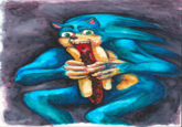 The painting has long been celebrated online as one of the cooler and creepier paintings. For example, a 2010 Reddit post by andrewsmith1986 on /r/pics called it "the most badass painting."[2] A post on /r/Creepy of the painting from December 2016 gained over 530 points.[3] In addition to being shared online, it has also long been parodied in exploitable edits. For example, in 2012 Tumblr user aquaticsasquatch posted a Why I'm Antisocial parody using the painting (shown below, left). In 2013, DeviantArt user PurpleMerkle posted a parody of Mickey Mouse devouring Darth Vader (shown below, right).
