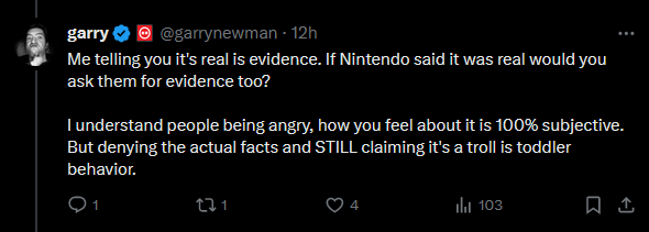 This person pretty much just displayed what Garry and his fans think. "It's Nintendo, fuck them, and anyone who says otherwise is a bootlicker!"