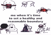 Another notable variant was posted by Instagram[11] account @thisisafleshprison on November 10th, 2021. The meme (shown below) replaced all the text in the meme to instead read, "me when it's time to set a healthy and reasonable boundary." The post received roughly 12,900 likes over the course of three weeks. The aforementioned meme, in particular, was exploited separately going into November 2021, with many subsequent variants of the format starting with "me when" rather than the original "girls when they're."