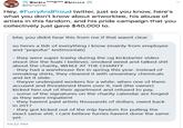 Some, however, were not as enthusiastic about the campaign. User @PartyPrat posted screenshots from a person who spread some negative rumors about ArtWorkTee, saying they had done some negative things in the past (shown below, left). They also posted an interaction where ArtWorkTee denied that the proceeds would go to charity, which caused a Twitter user to accuse him of lying in the campaign (shown below, right).