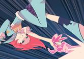 A wikia site for the series has been created[6], as has a TV Tropes page[10]. Commentators on Reddit were immediately hopeful for a vast array of reaction images, given the series’ deliberate style which one user described as “So Trigger it hurts”[7]. Fans were also quick to speculate in coming weeks over the show’s connection to other universes, as it has featured references to other Trigger works, including Inferno Cop, Little Witch Academia, and the aforementioned Kill la Kill, especially concerning certain relationships between the principle characters, and the character of Over Justice, who was suggested to be connected to Inferno Cop via a Japanese Twitter user.[8][9]