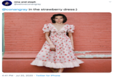 The following day, Twitter[4] user @seokthestallion tweeted, "here's a hijabi IG influencer Noor w her strawberry dress, she wanted it ro be lil edgier hence the dark base." The tweet received more than 99,000 likes and 12,000 retweets in one week (shown below, center).