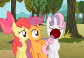 Sweetie Belle Derelle is an exploitable reaction image featuring the character Sweetie Belle from My Little Pony: Friendship is Magic with her eyes pointed in opposite directions and her mouth opened wide. The image is usually used to derail a forum or image board thread, also known as thread jacking, by spamming the thread full of pictures of Sweetie Derelle, often including repetitive capitalized "A"s.