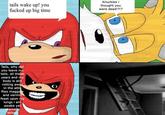 Tails Wake Up! You Fucked Up Big Time refers to a series of memes, including photoshops and redraws, based on a set of panels from chapter two of the Tails Gets Trolled webcomic. The comic, depicting Knuckles and Tails from Sonic the Hedgehog was posted to DeviantArt in 2011 and became the subject of memes in 2019 as it spread over the following years.