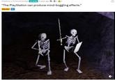 The PlayStation Can Produce Mind-Boggling Effects refers to a photo from issue 61 of Electronic Gaming Monthly magazine (EGM) showing two simply animated skeletons from the PS1 era game King's Field overtop of the phrase, "The PlayStation can produce mind-boggling effects." The image became the subject of memes, including redraws and photoshops, throughout the 2020s for how perceivedly absurd it is to call the shown skeletons "mind-boggling" compared to modern day video game graphics. The phrase was written by video game producer Chris Johnston in 1994, when he worked at EGM.