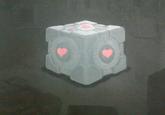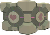 The Weighted Companion Cube is an item in the video game Portal that is a type of weighted storage cube with hearts on it's sides. Weighted storage cubes are often used to hold down large buttons on the ground in order to solve the various puzzles throughout the game.