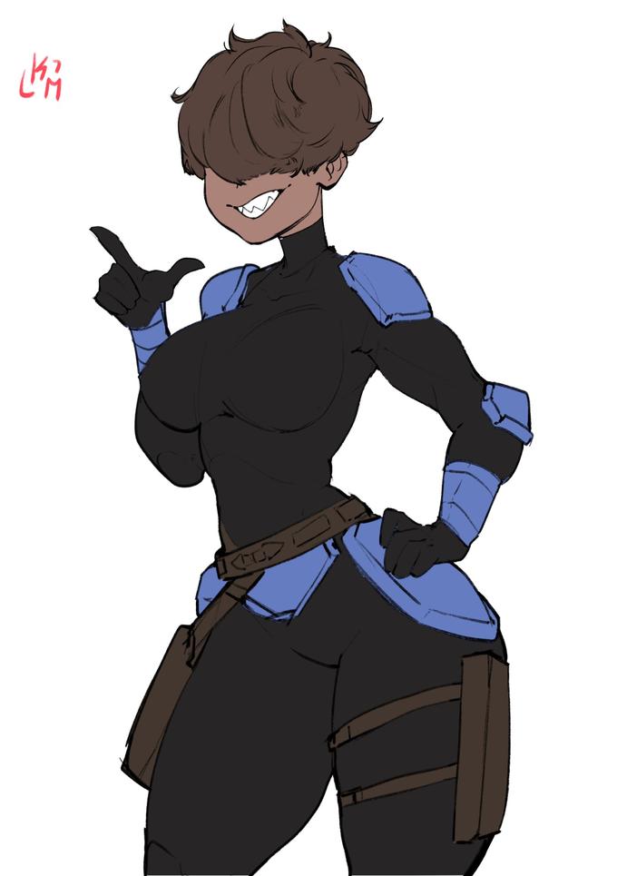 On November 15th, artist @DeputyRustArt tweeted[3] that Sarkeesian's post gave him an idea for making an art of "Tig biddy tomboy mandalorian" (shown below, left) Later on the same day, @DeputyRustArt tweeted[4] an artwork of a large-breasted tomboy Mandalorian warrior loosely based on the design of Koska Reeves (shown below, right). The tweet received over 6,800 retweets and 49,400 likes in three days.