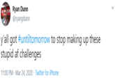 The challenge received widespread recognition on Instagram in late March 2020. As of March 25th, 2020, over 263,600 posts tagged #UntilTomorrow were posted on Instagram, with the additional 3,800 posts tagged #untiltomorrowchallenge (censored examples shown below).[3][4][5]
