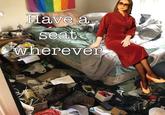 Welcome >_< Take a Seat Wherever or Have a Seat Wherever refers to a series of image macros where anime girls are shown sitting in messy rooms and welcoming the viewer to sit wherever. The original meme was posted to iFunny in 2020 and inspired several variants over the following years replacing the character. It is similar to the Damn Bitch, You Live Like This? meme.