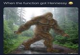 On February 14th, 2021, FunVizeo[1] user Kevin posted an image macro using a drawing of Bigfoot under the caption "when the function got Hennessy" (shown below). That same day, Instagram[2] user salad.snake reposted the meme, gaining over 39,400 likes in a year.