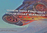 When You Find Out Your GOAT Washed, also known as When You Find Out Your GOAT Is Washed, is a meme catchphrase that combines the slang terms GOAT or "Greatest Of All Time* and "Washed" as in washed up or "no longer great." Jokes about people's "GOAT" being "washed" began to proliferate online in the early 2020s, first being used to describe NBA stars and then being used for various popular figures in media and sports. A meme featuring Lightning McQueen from the animated Disney movie Cars flipping upside down with the phrase "