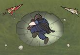 Yamcha's Death Pose is an image exploitable series based on a stillshot of DragonBall Z character Yamcha fallen on the ground after suffering a fatal injury in the battle against Saibaman, a relatively weak villain character. The images depict Yamcha or other anime character lying inside the crater and they are typically used to indicate failure or weakness.