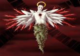 Zero Two is the secret final boss from the video game Kirby 64: The Crystal Shards. In the game, you can only fight him if you have all of the Crystal Shards in the game. Many unexpected things are said to attribute to its online popularity, including its appearence/what happens when it takes damage (It appears as a fallen angel and cries sprays of blood), the boss's secret nature, or the music that plays in the background of the fight. All of these have garnered attention to the angel, and it has gotten a ton of Youtube remixes and fanart generally thought of as "disturbing".
