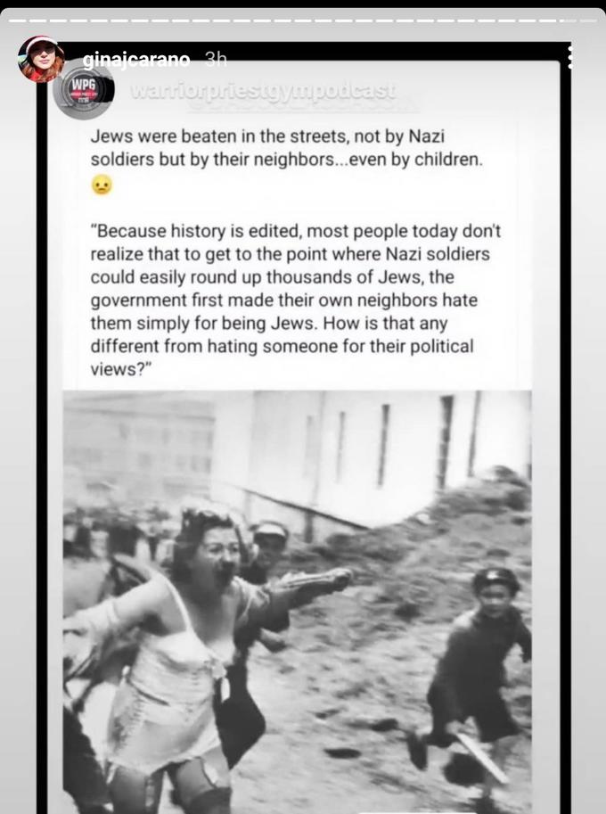 did she just compare the holocaust to being a republican .. #FireGinaCarano pic.twitter.com/an3css7Kdr
