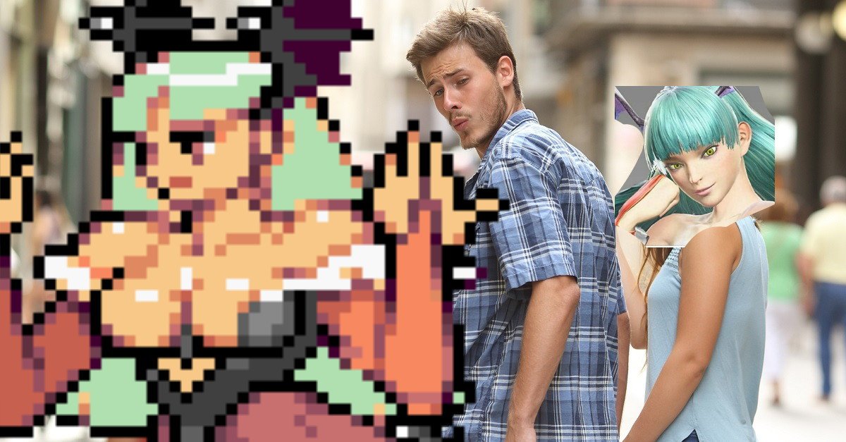 morrigan aensland man looking at other woman kerochobittsu darkstalkers