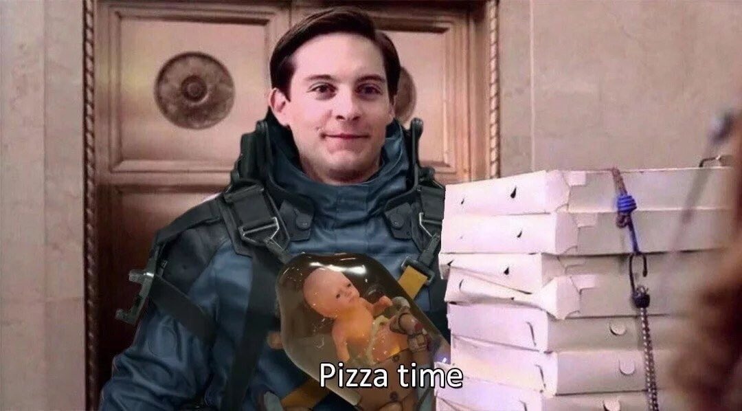 lishainik death stranding bb peter parker pizza time