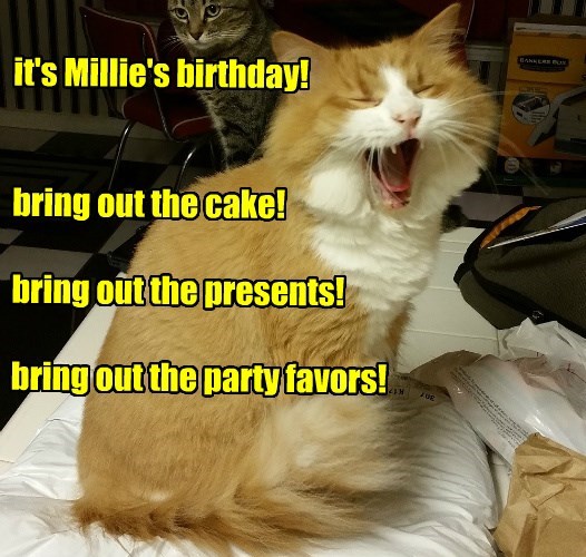 happy birthday happy birthday meme cat meme presents cake party favors