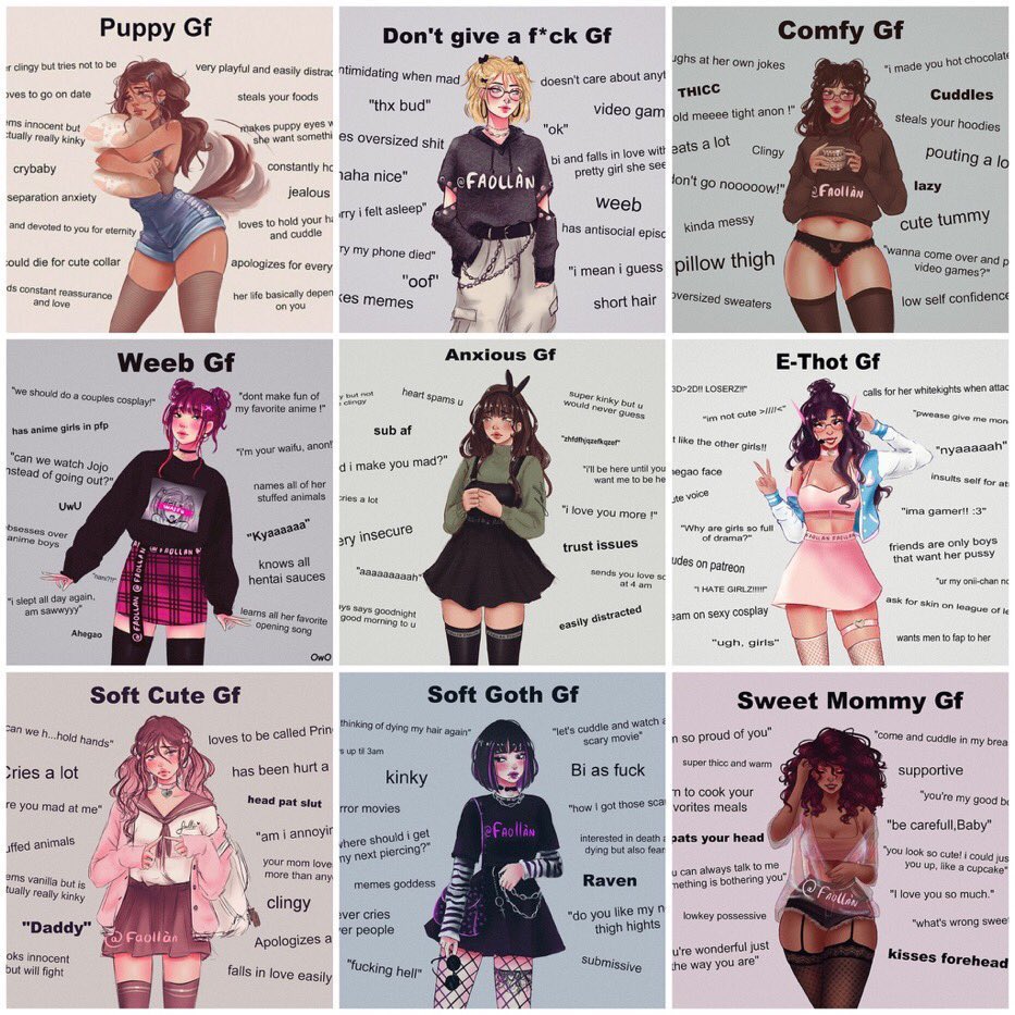puppy gf comf gf weeb gf anxious gf e-thot gf soft cute gf soft goth gf sweet mommy gf