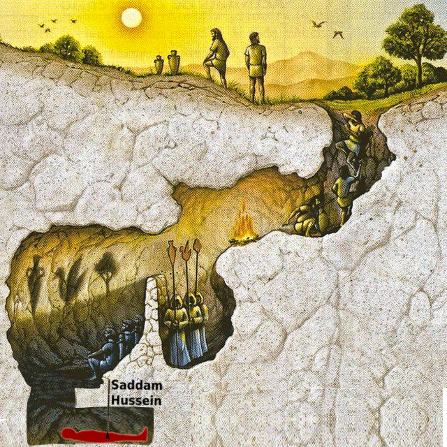 saddam hussein iraq hiding place spider hole bunker allegory of the cave