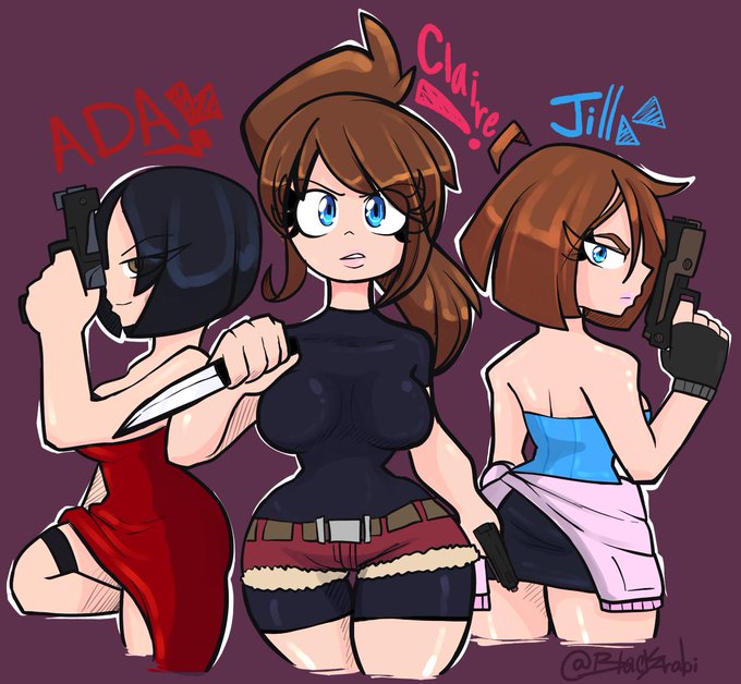 ada wong claire redfield jill valentine resident evil 2 biohazard 2 resident evil 3 nemesis biohazard 3 last escape resident evil 4 biohazard 4 blackarabi hips pistol gun knife bodysuit cocktail dress hotpants miniskirt coat sash fingerless gloves
