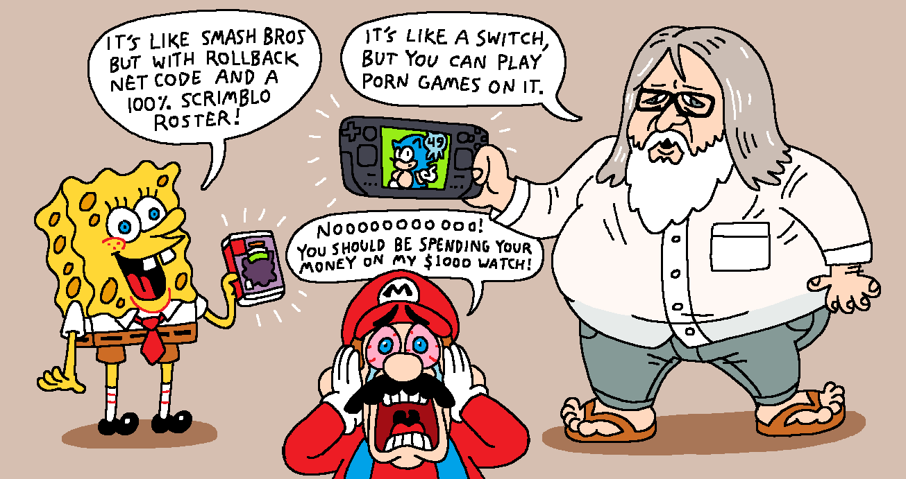 scrimblo bimblo gabe newell steam deck nickelodeon all-star brawl rollback netcode super mario smartwatch