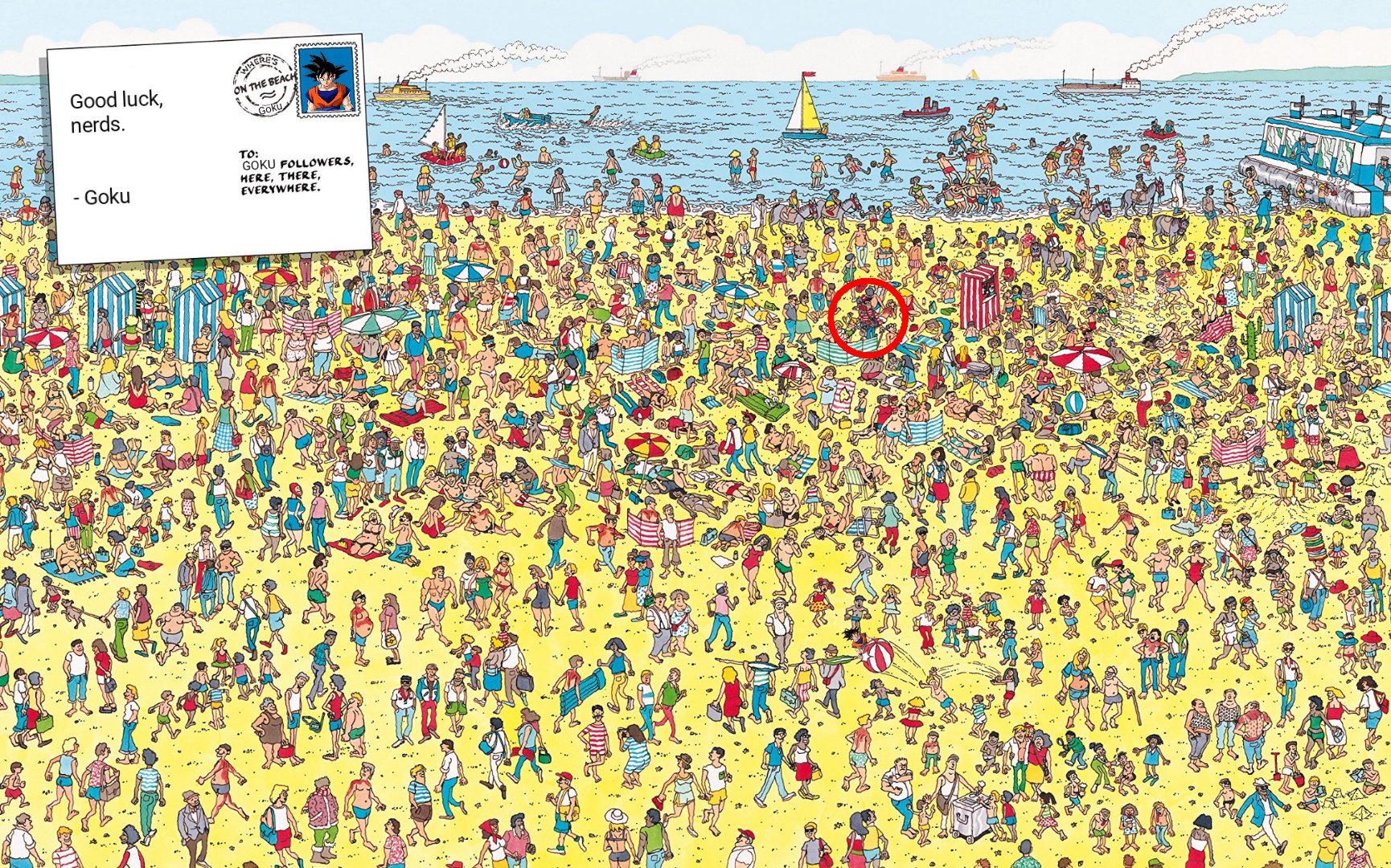 where's goku goku background red circle dragon ball where's waldo