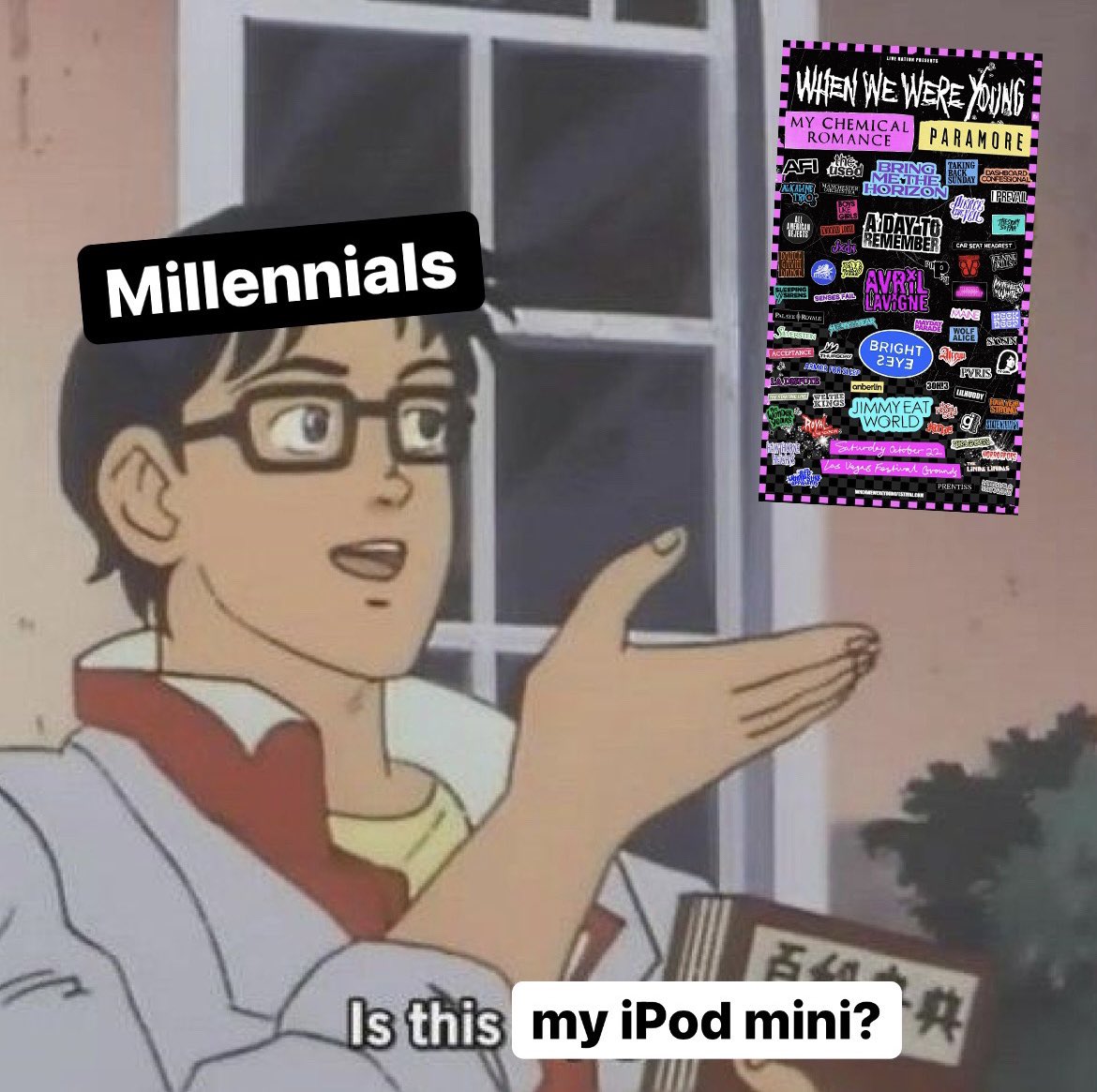 when we were young festival music punk emo nostalgic millennial 2000s scene y2k paramore my chemical romance meme memes