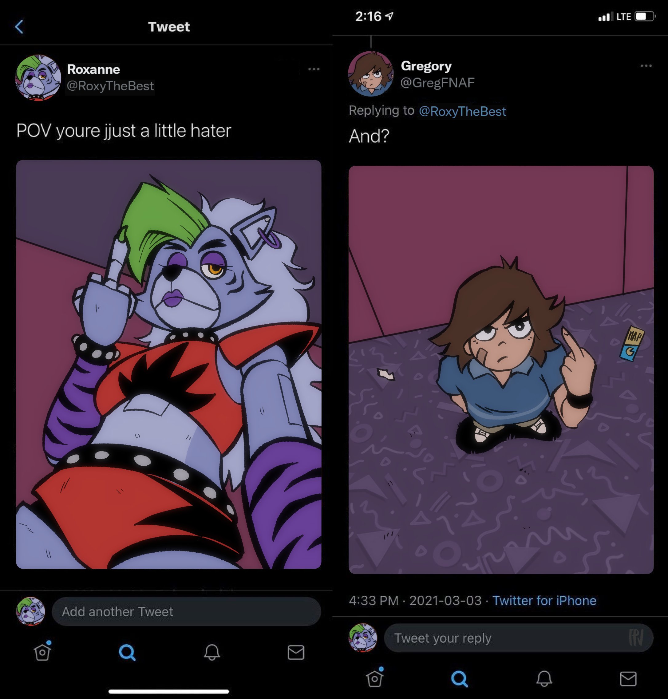 roxanne wolf gregory five nights at freddy's five nights at freddy's security breach middle finger f0xnr0ll fox popvli
