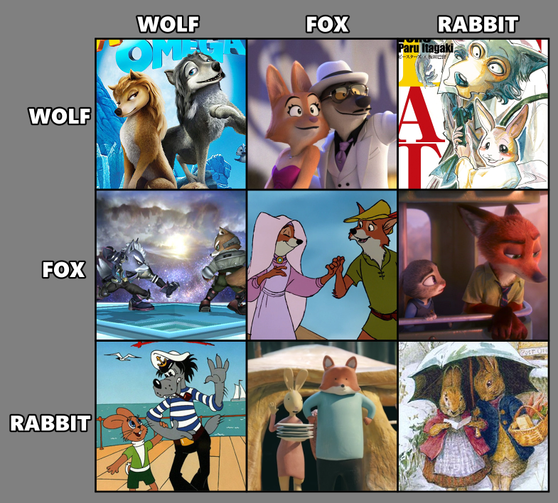 tggekoa wolf fox rabbit chart the bad guys zootopia alfa and omga beastars robin hood well just you wait! vos en haas