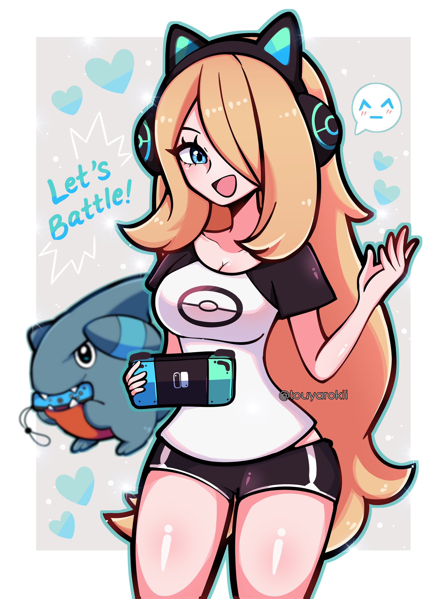 pokémon cynthia gible nintendo switch joy-con headphones gamer gamer girl touyarokii