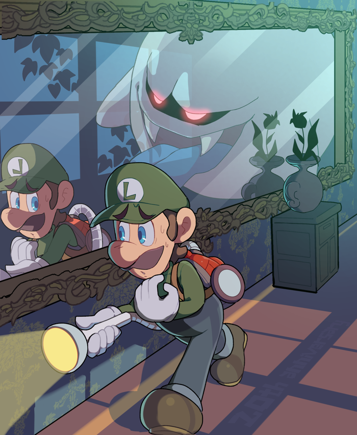 luigi king boo luigi's mansion super mario nintendo haunted haunt haunting stalking stalk creepy spooky ghost tongue mirror artist:hosinoirie777