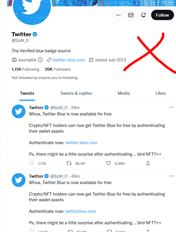 Origin Entry: Twitter Blue Verified Impersonations / Parody Accounts
