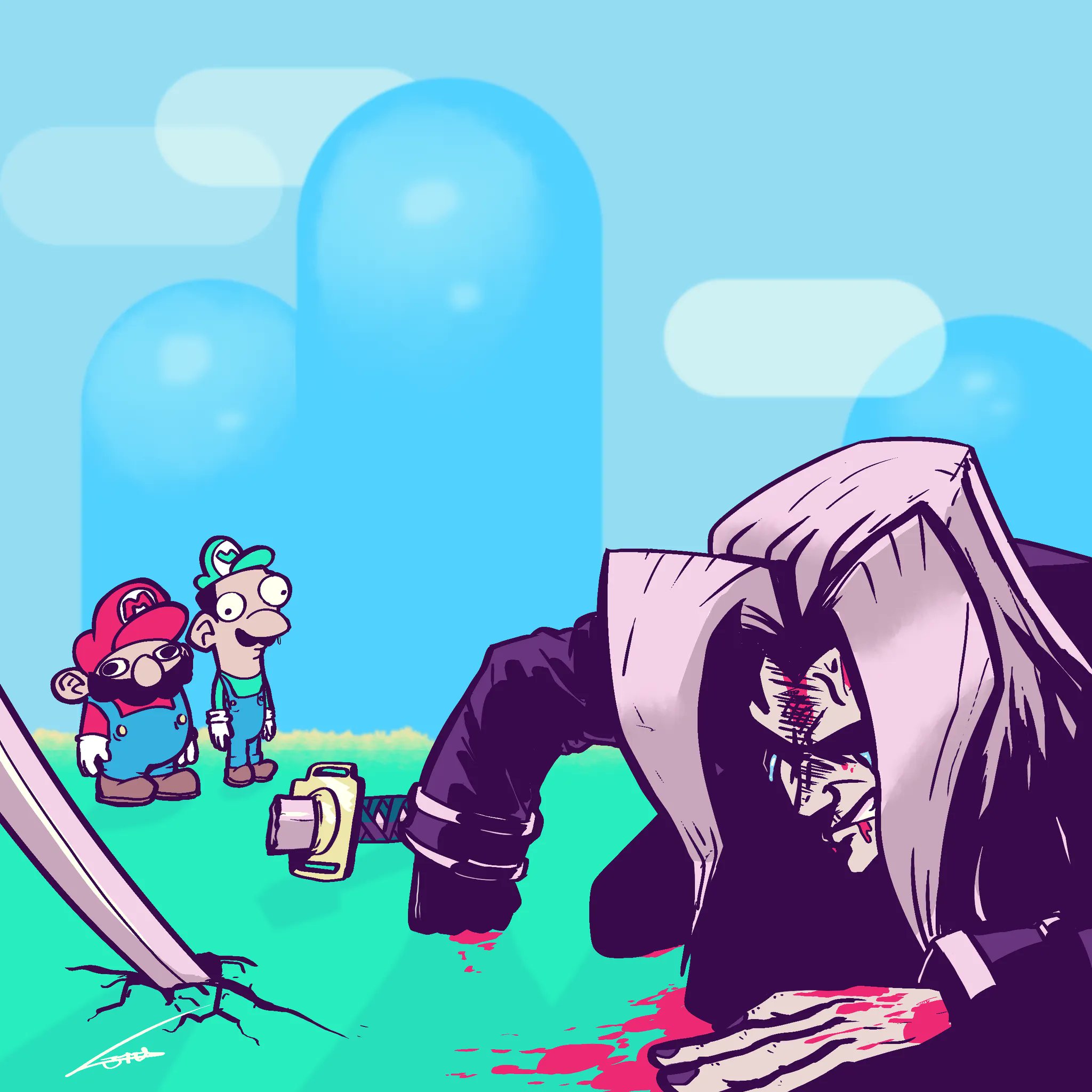 broken sword silly mario connor o'brien mario and luigi vs. sephiroth mario luigi sephiroth masamune blood