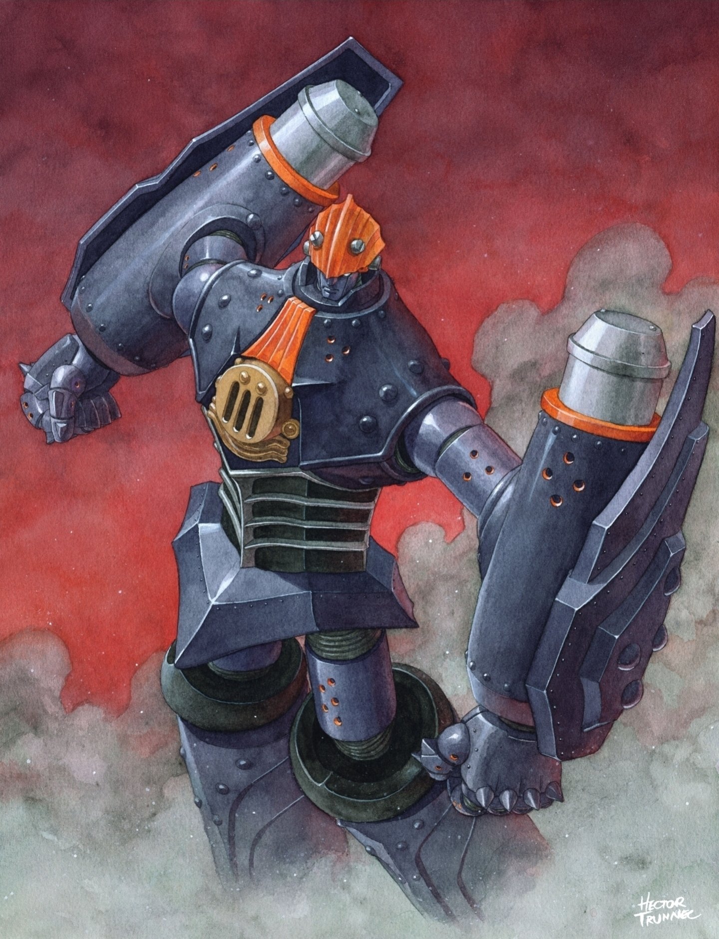 the big o trunnec mecha super robot art watercolor megadeus