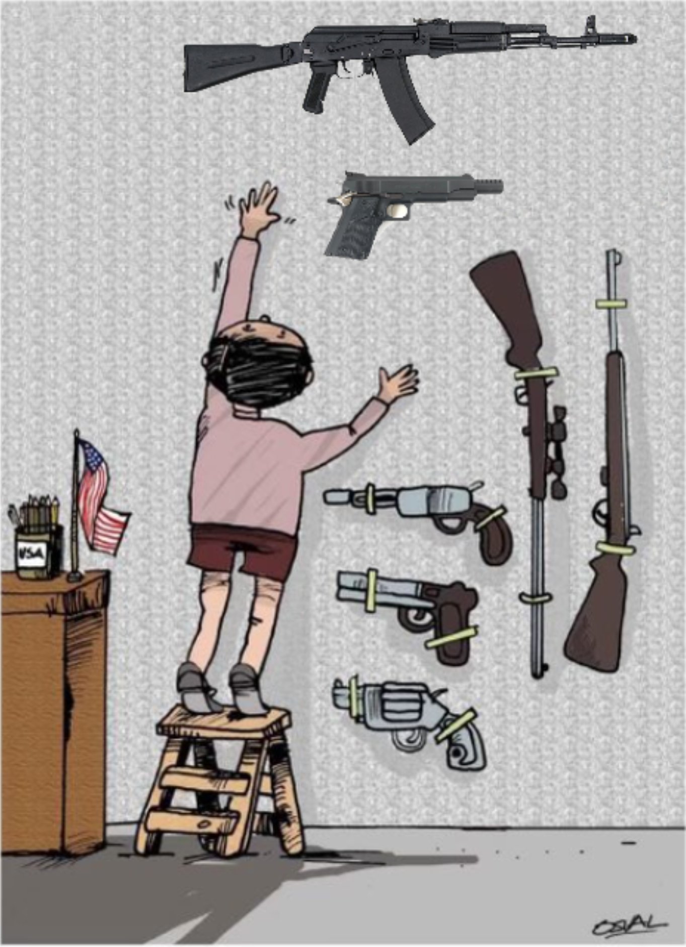 boy reaching for books ignoring guns osval lar grizzly webcomic ak-74