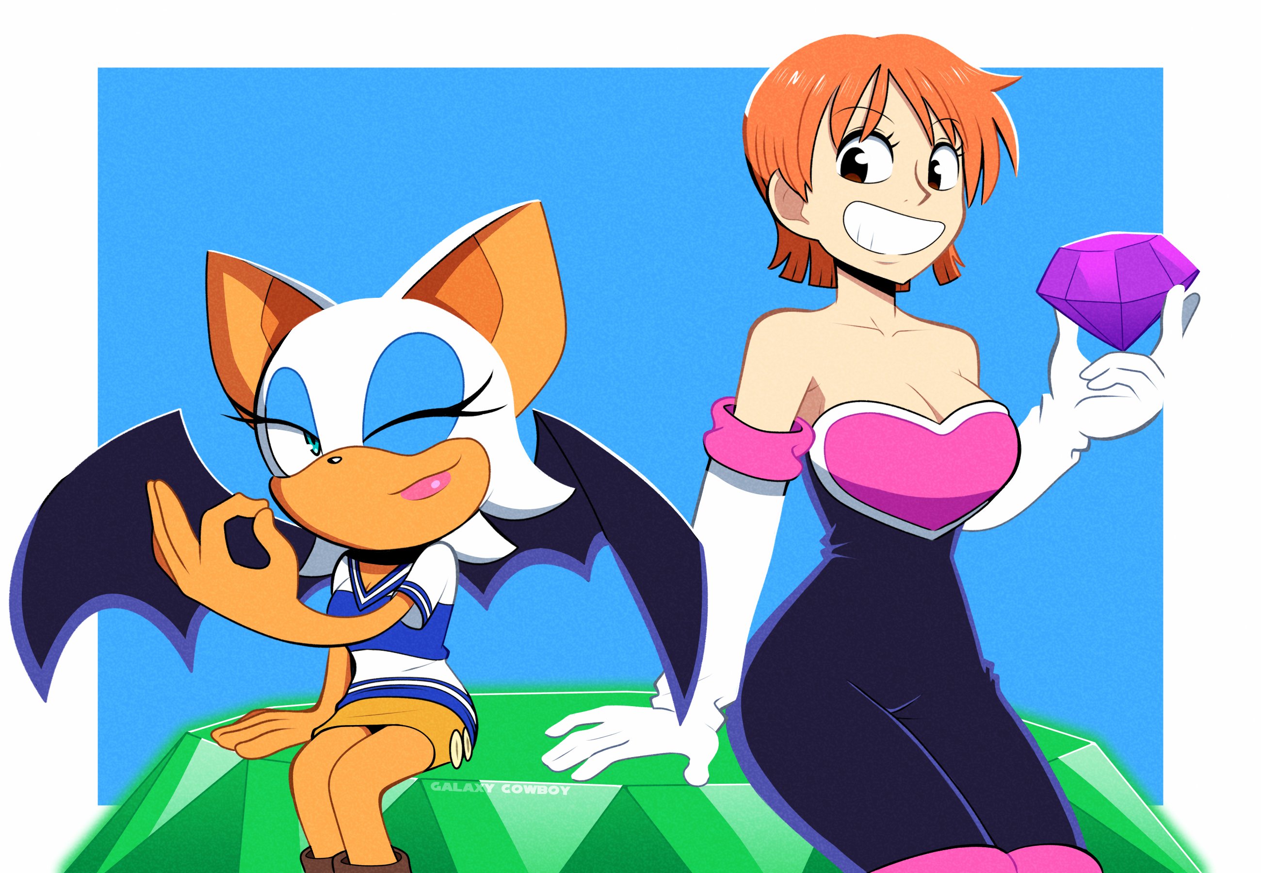 sonic the hedgehog rouge the bat chaos emerald master emerald one piece nami outfit swap clothes swap galaxy__cowboy