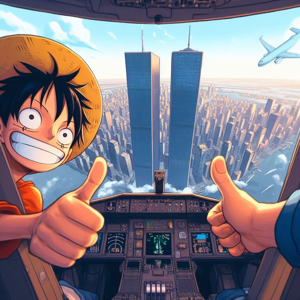 twin towers 9/11 monkey d luffy ai generated dall-e 3 bing image creator