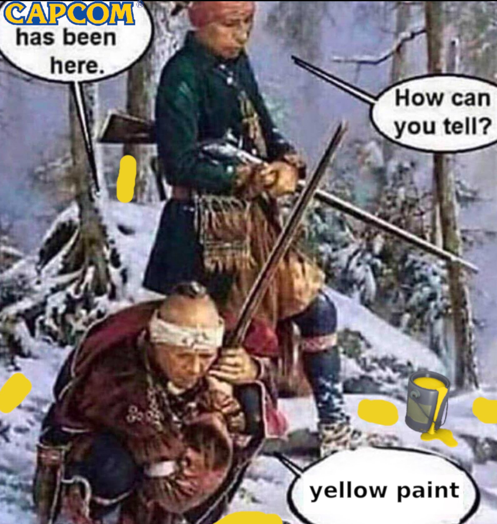 yellow paint yellow ladder game design white man has been here
