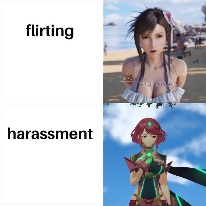 tifa lockhart final fantasy vii pyra xenoblade chronicles 2 flirting vs harassment