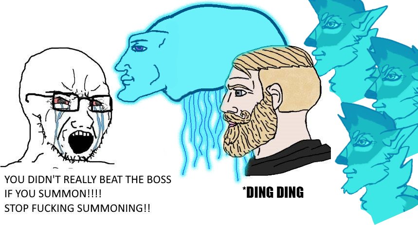 you didn't beat the game you didn't beat the boss soulslike if you used elden ring yes chad soyjak summons