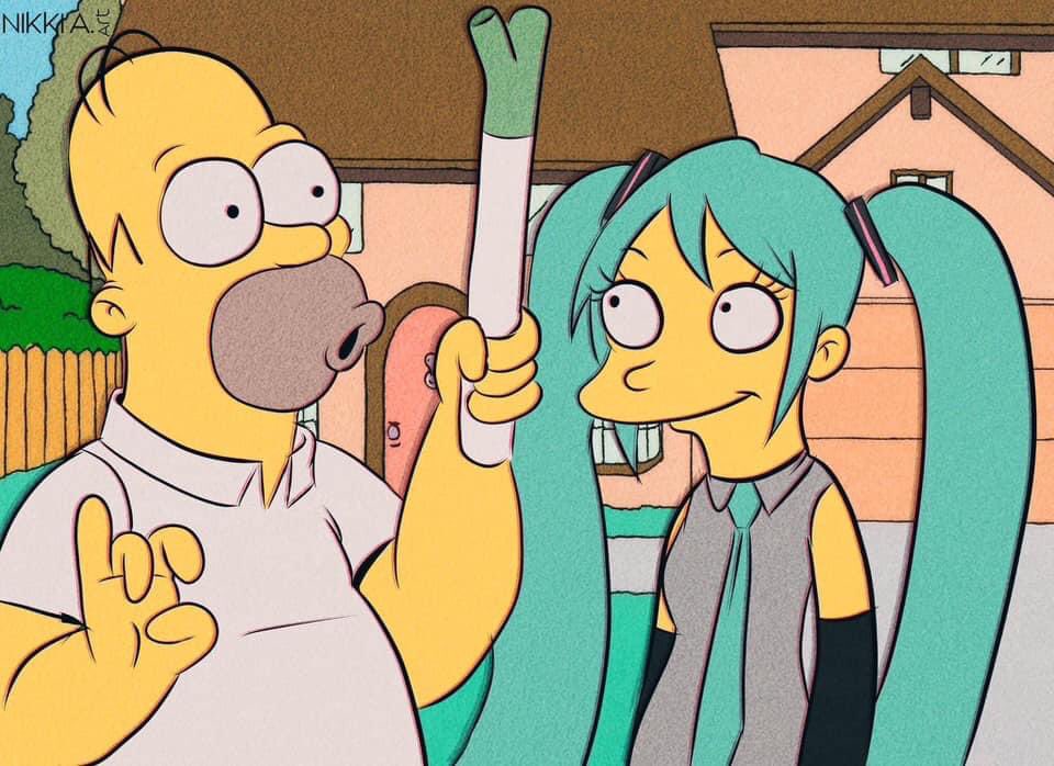 hatsune miku the simpsons homer simpson leek nikkiaart