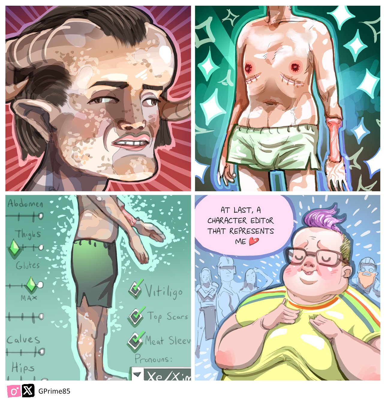 george alexopoulos dragon age the veilguard character creator top surgery scars vitiligo chest size buttocks size glutes size
