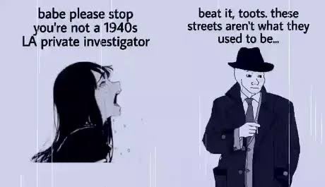1940s private investigator babe please stop