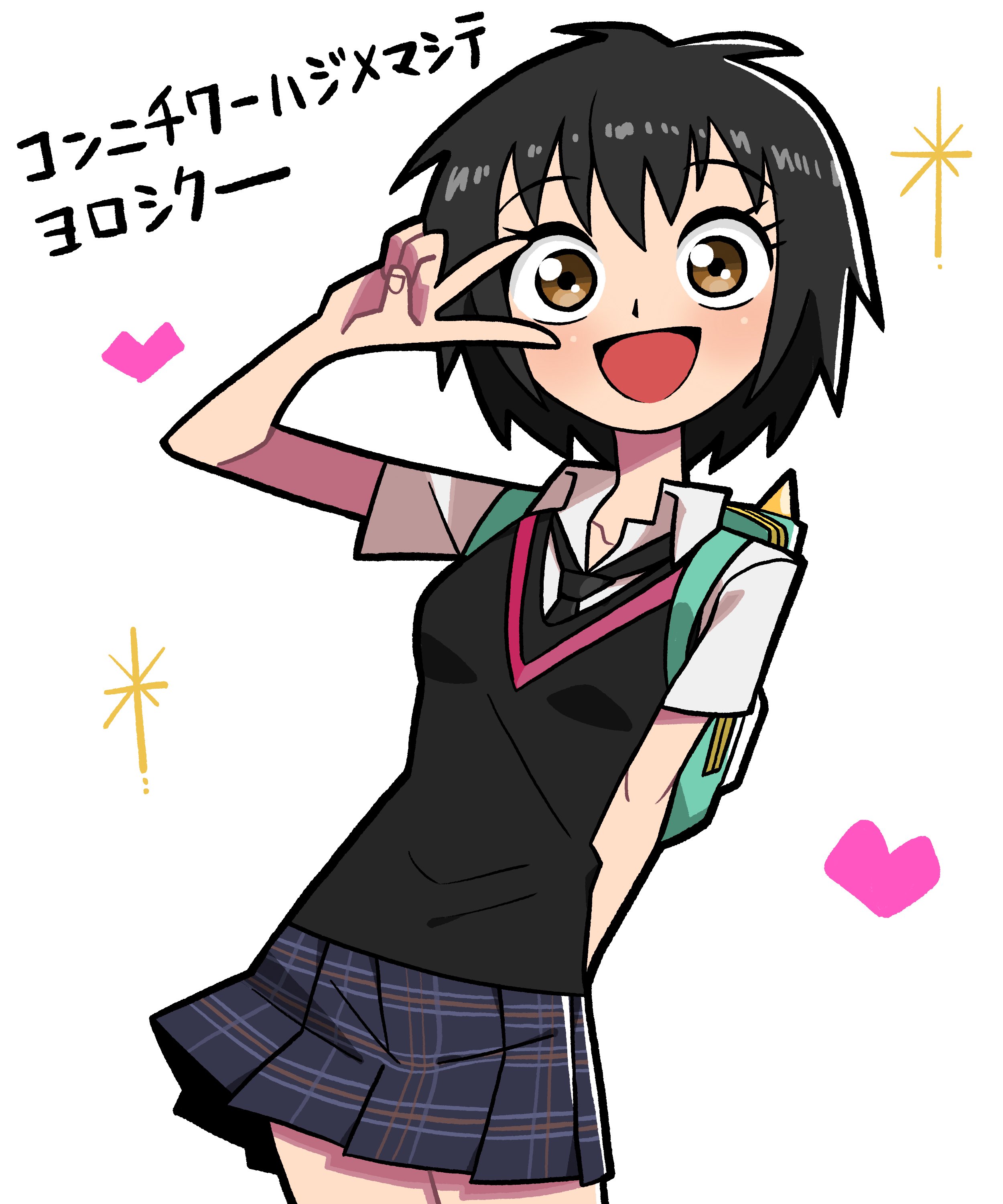 artist: n___k___m peni parker cute spiderman into the spiderverse schoolgirl uniform school pleated skirt backpack peace sign