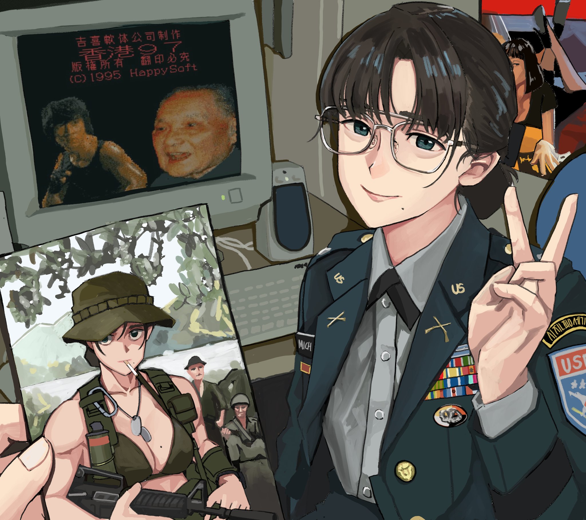 waniv @waniiii6974 army south korea katusa happysoft vietnam war soldier officer airborne pulp fiction poster hong kong 97 china mole beauty mark glasses megane