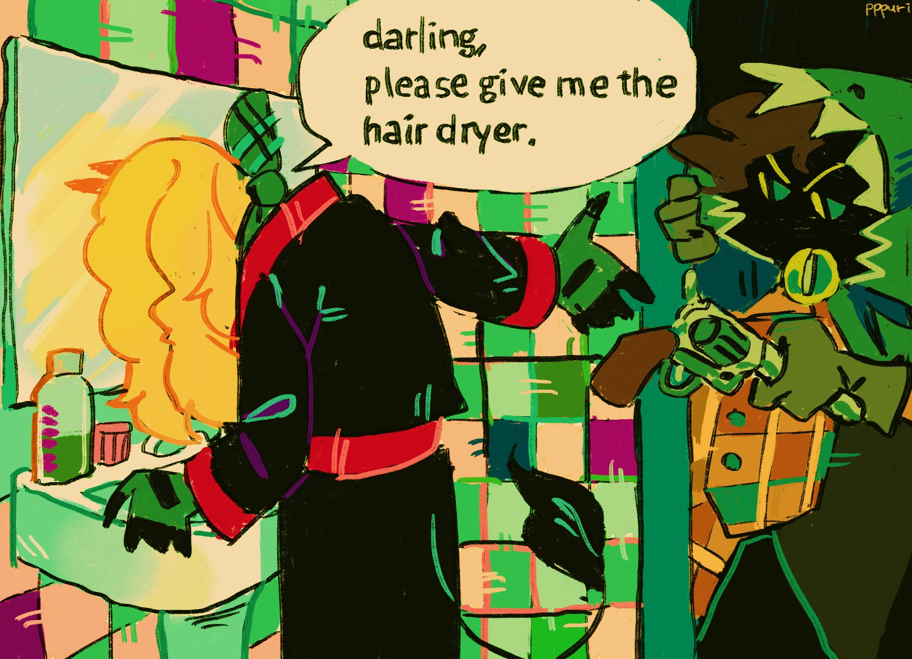 hand me the damn dryer darling please give me the hair dryer boomer humor boomer comics wife bad handgun revolver qsmp quackity smp minecraft