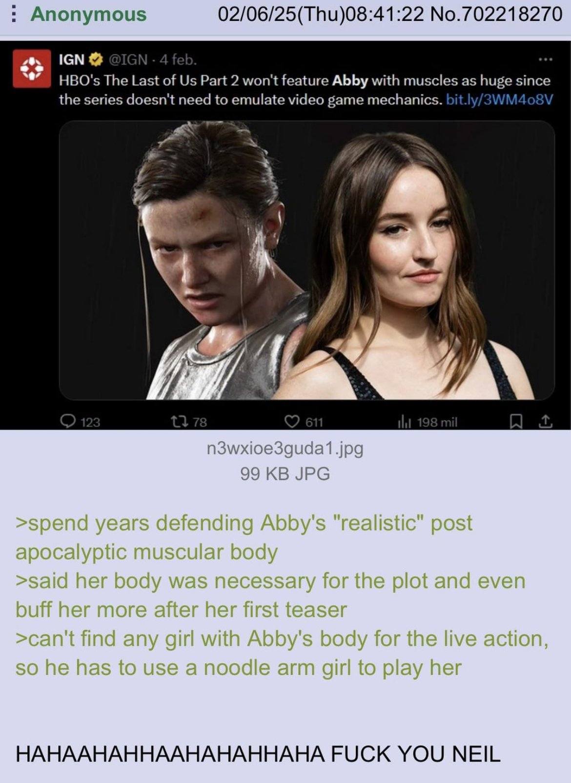 ign hbo tweet 4chan abby kaitlyn dever neil druckmann neil cuckmann tlou2